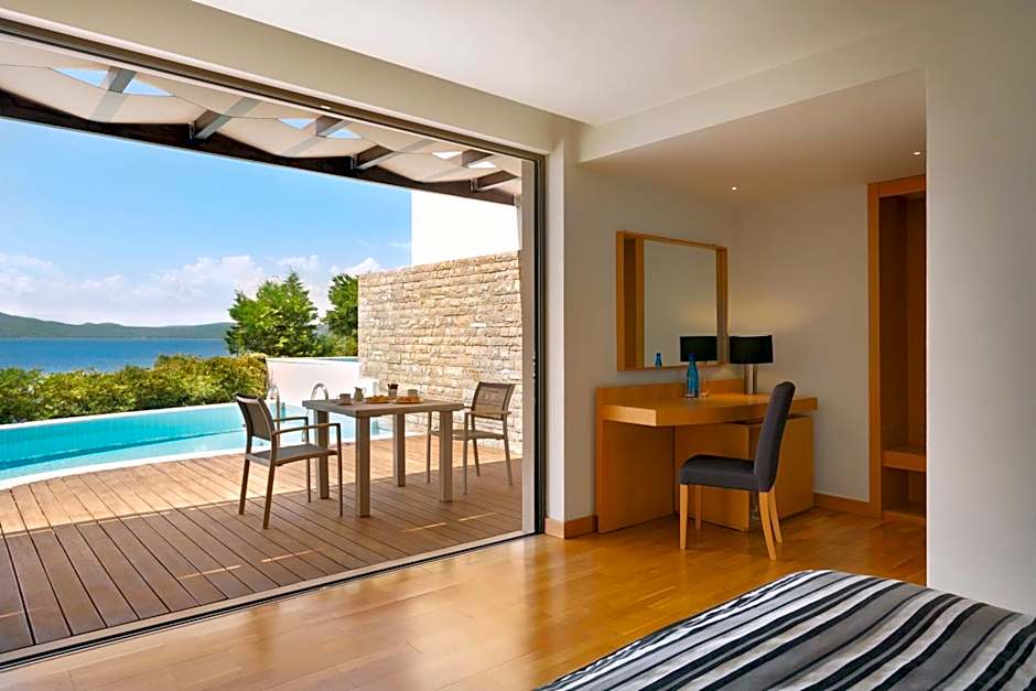 This suite's standout feature is the pool with a view. The suite offers air conditioning, a private entrance, a terrace with sea views as well as a private bathroom boasting a bath. The unit has 1 bed.